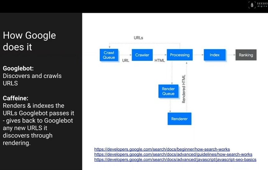 What it will then do is potentially if your website hasn't shown all the links in the first place, if there's more to then find, once it renders all that information, if more links come out at that point, it will then pass those links back to Googlebot, come in and have another pass at that.