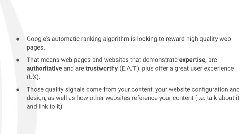 But it's actually a really good paradigm, just for generally thinking about your content, and thinking about your website expertise. Is your content showing you up to be an expert in your field?