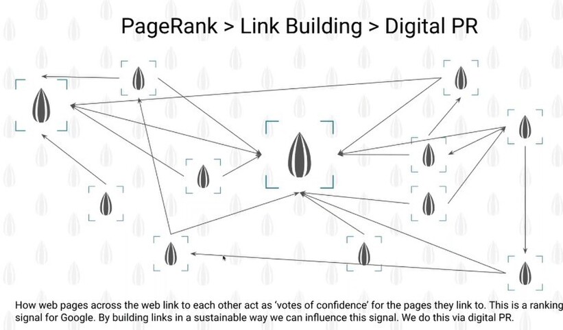 Obviously, some of those websites are attracting more links than others, And the size of the seed in the box there is a representation of the subsequent power or ranking power that page has.